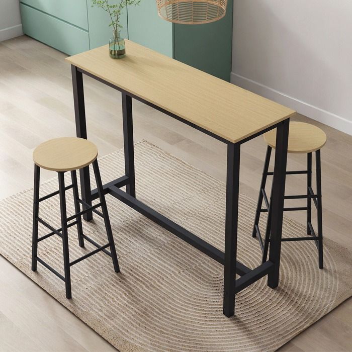 Bartisch mit 2 Barhockern Schwarz und Sonoma 120 cm Ani