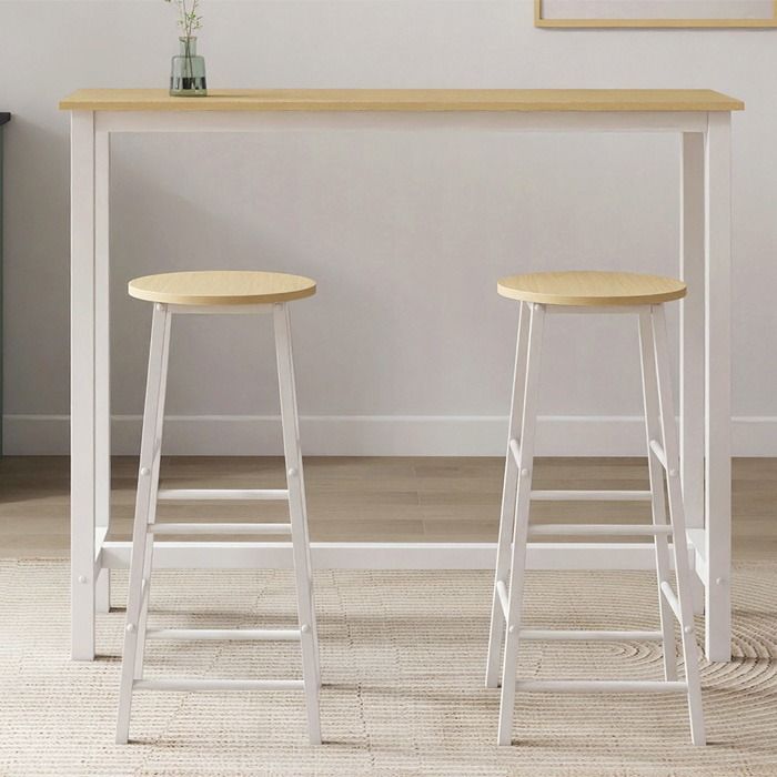 Bartisch mit 2 Barhockern Weiß und Sonoma 120 cm Ani