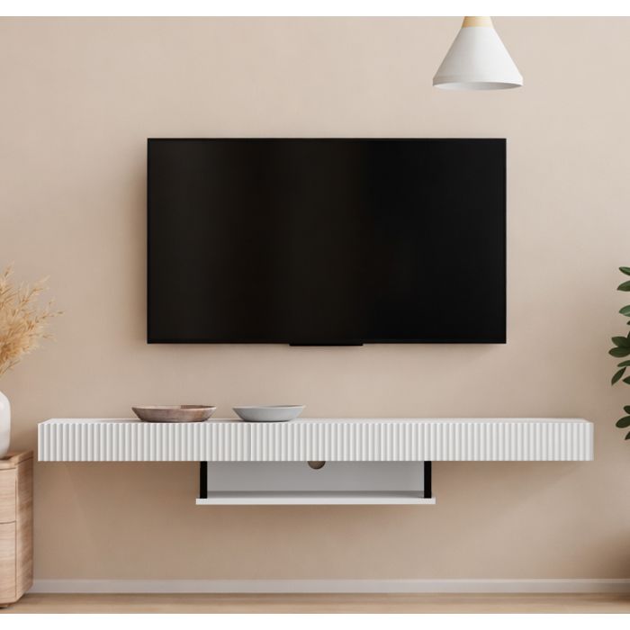 Der größte Vorteil dieses TV-Möbels ist seine Vielseitigkeit. Es lässt sich in jedes Wohnambiente integrieren, insbesondere in kleinere Räume, und ermöglicht unterschiedliche Zusammenstellungen je nach Bedarf. Sein zeitloses Design macht es zu einer praktischen und zugleich dekorativen Lösung für den täglichen Gebrauch.