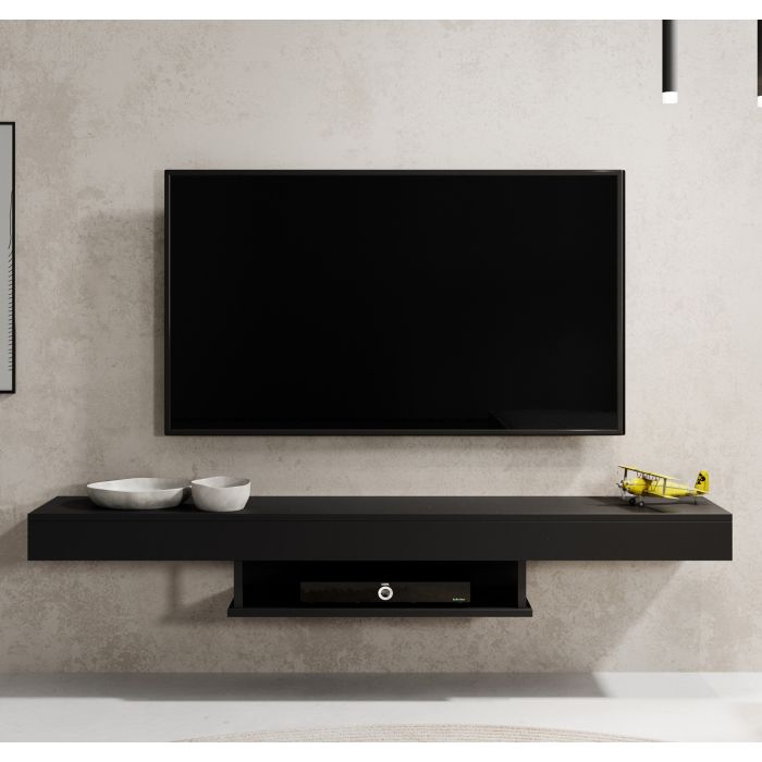 Es braucht nicht viel Platz und der obere Teil kann für dekorative Gegenstände verwendet werden, die du hervorheben möchtest, während du das schwebende Regal darunter für DVD-Player oder andere elektronische Geräte nutzen kannst.