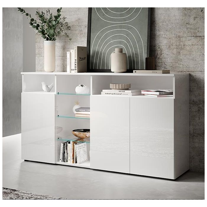 Struktur und Türen mit glänzender Melamin-BeschichtungGlasregale