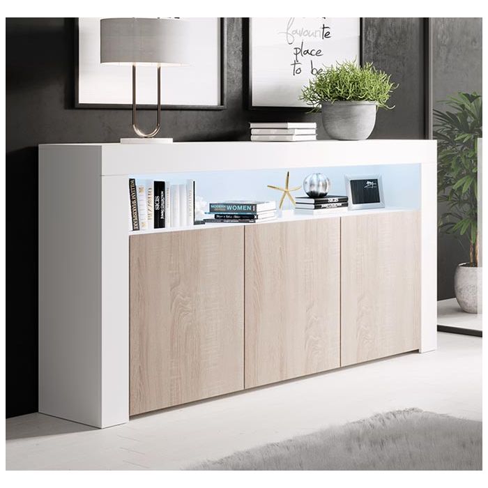 Sideboard Modell Aker - Weiß glänzend und sonoma matt