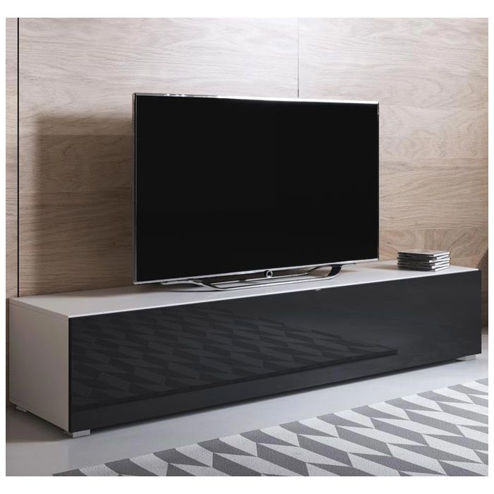 TV-Schrank Modell Luke H2 mit Standardfüße (160x32cm) - Weiß und Schwarz