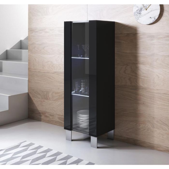 Vitrinenschrank Modell Luke V2 mit Aluminiumfüße (40x138cm) - Schwarz