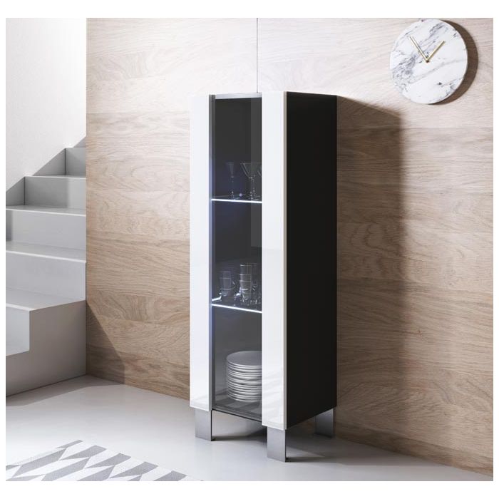 Vitrinenschrank Modell Luke V2 mit Aluminiumfüße (40x138cm) - Schwarz und Weiß