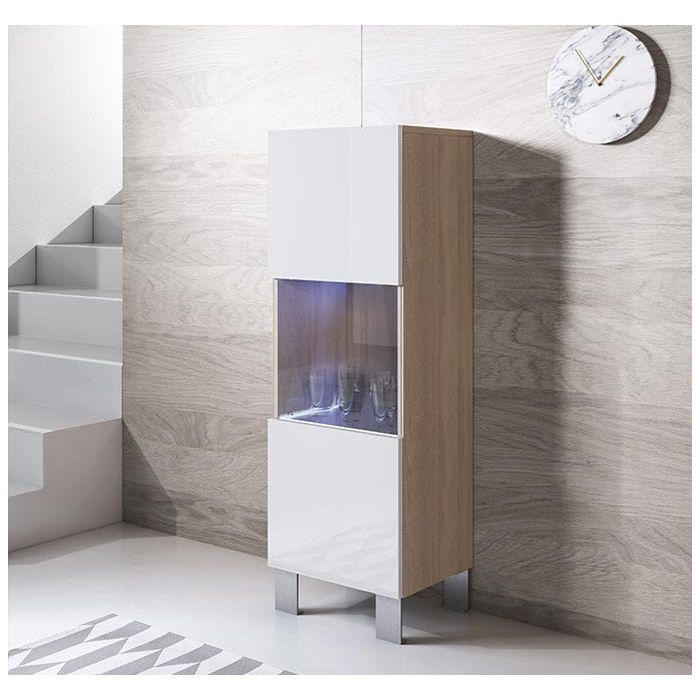 Vitrinenschrank Modell Luke V3 mit Aluminiumfüße (40x138cm) - Sonoma und Weiß