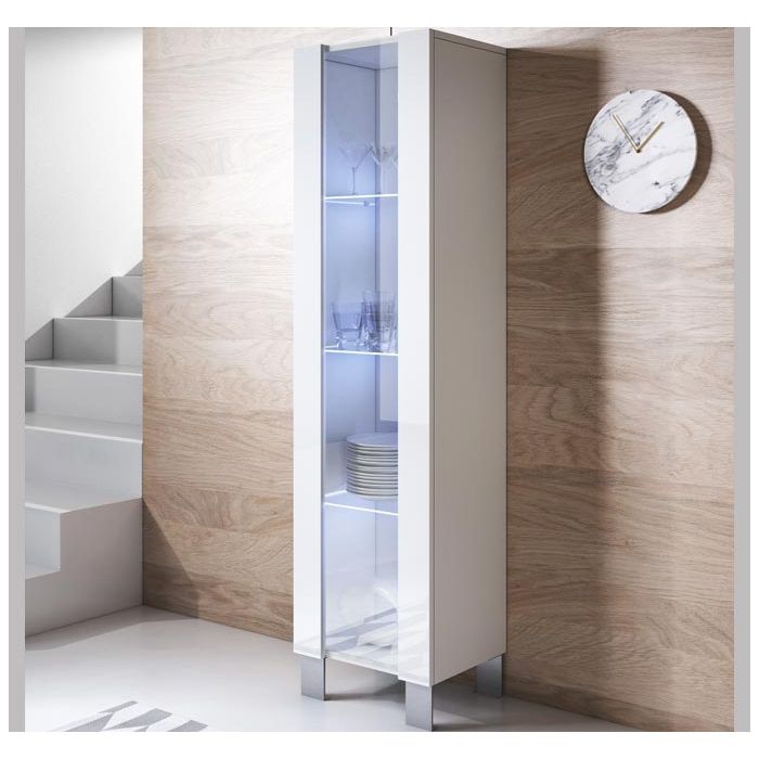 Vitrinenschrank Modell Luke V5 mit Aluminiumfüße (40x177cm) - Weiß