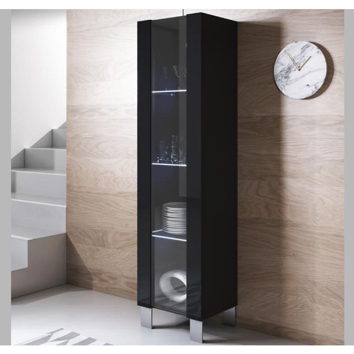 Vitrinenschrank Modell Luke V5 mit Aluminiumfüße (40x177cm) - Schwarz