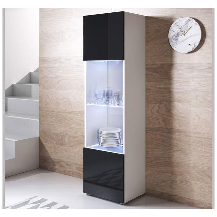 Vitrinenschrank Modell Luke V6 mit Standardfüße (40x167cm) - Weiß und Schwarz